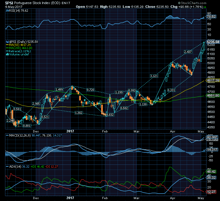 Os CTT tal como genericamente 80% dos componentes do Psi20, encontra-se num Bull market, à semelhança do Cac40, Ibex 35 e Stoxx50 que caracterizam uma Europa overperformante (vis a vis o benchmark global S&P500,NASDAQ Compx, América do Sul, Nikkei, e BCI (commodities), sobretudo na Europa do Sul e assim deverá reforçar com Macron (exceptuando outros riscos, uma crise política USA ou conflito na Coreia do Norte, em que só nos valeria o ouro, prata, Swiss fr e lithium porque tudo o resto crasha à séria).