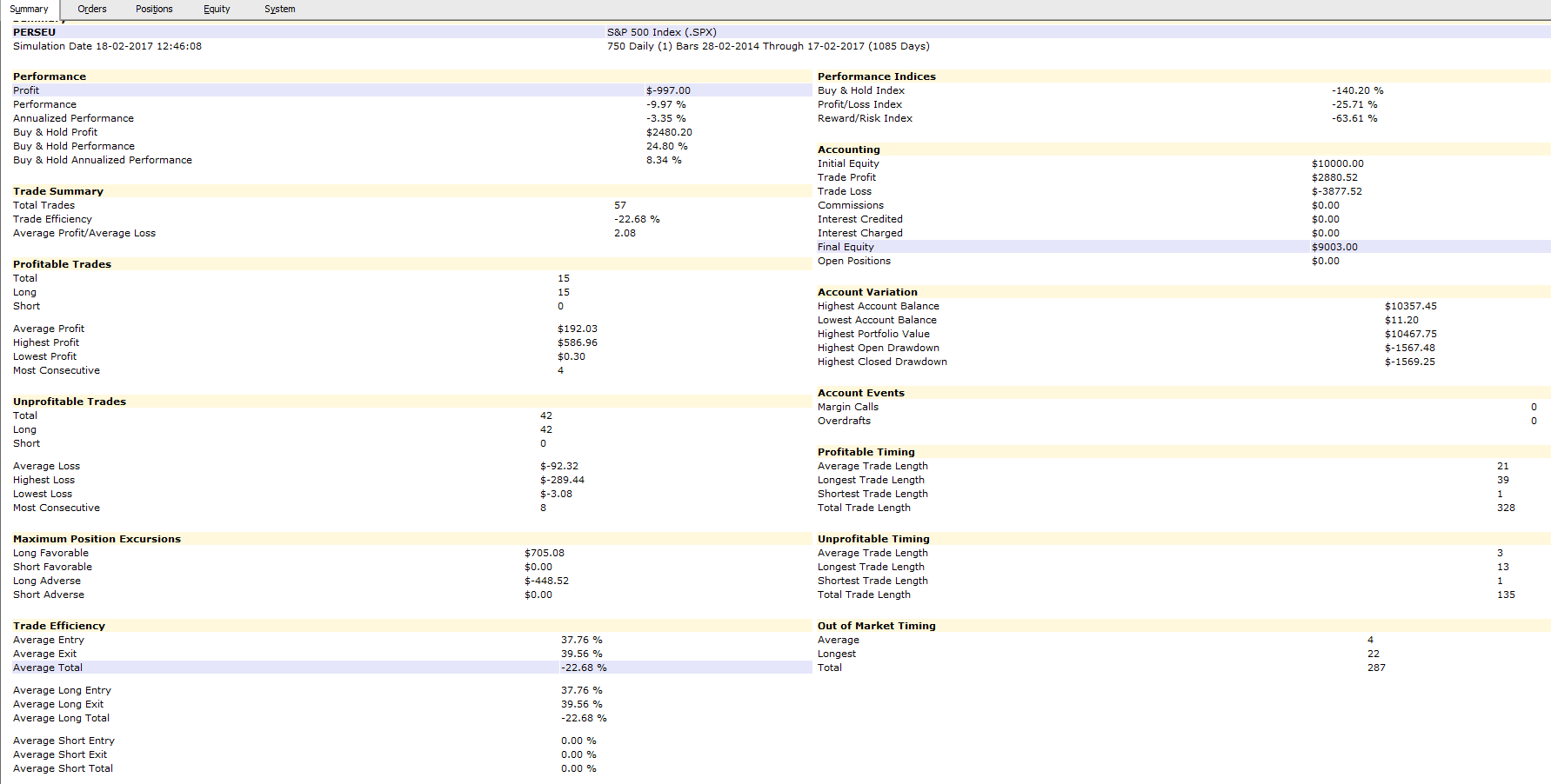 já agora, mais um teste este com o S&P, a 3 anos, também perde dinheiro