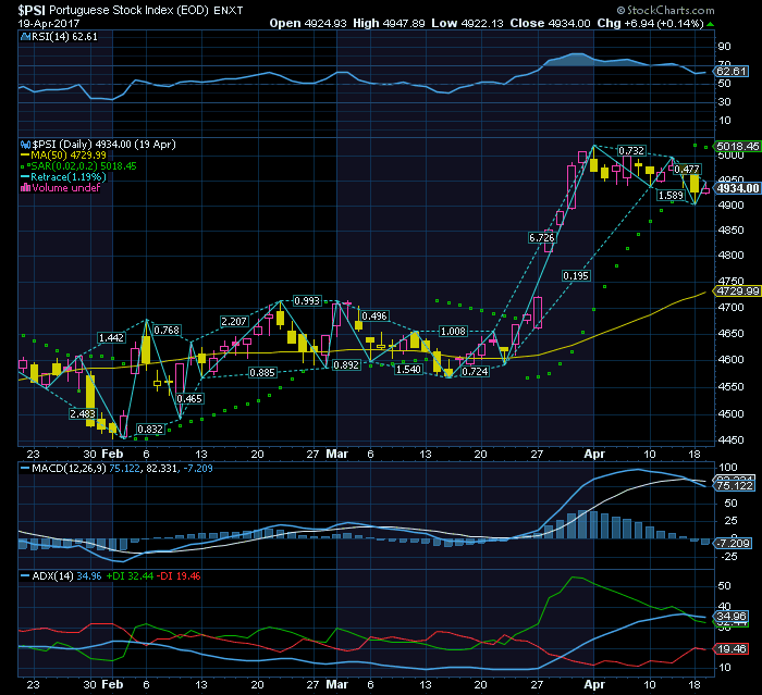 Para já como lá fora no CAC e DAX estão a aguentar-se acima das MM50 e positivos , esta cotada vai-se aguentando perto dos 5 , mas a quebrar o range acredito que possa ser para baixo.