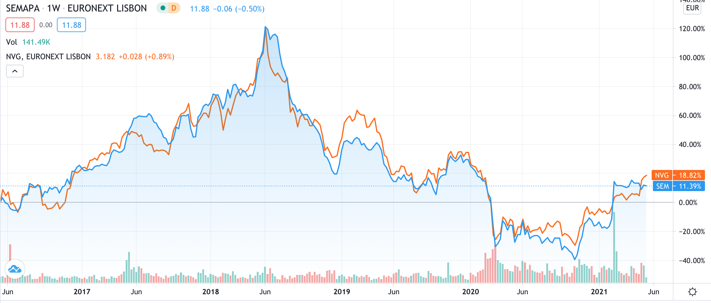 A OPA está a servir de rolha ao ajuste de cotação da Semapa que a estas alturas estaria pelo menos uns 30% acima só como correlação com a NVG, isto descontado o factor holding.