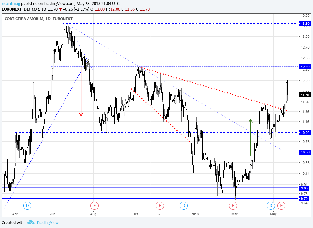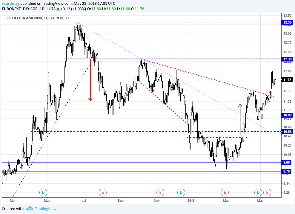 A meu ver, em modo bull clarinho, parece ter terminado esta fase de consolidação de quase um ano para voltar às subidas (para já rumo ao máximo, 13.20€). Vamos acompanhando.