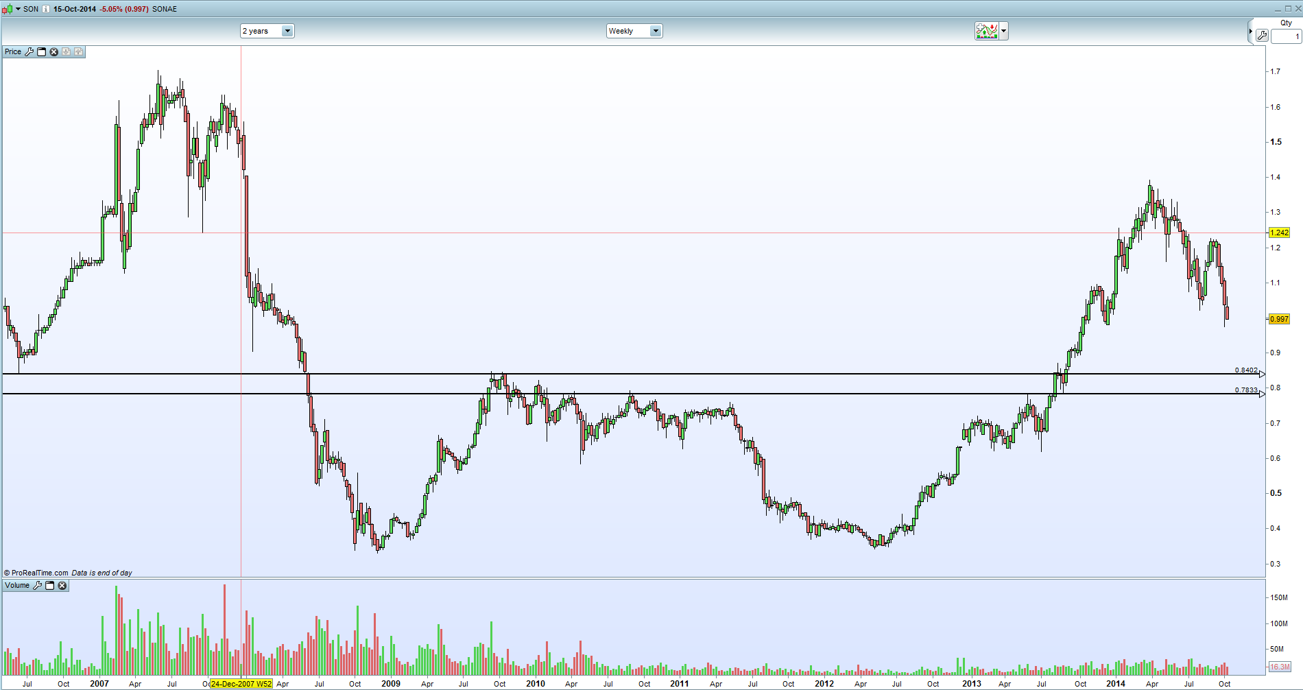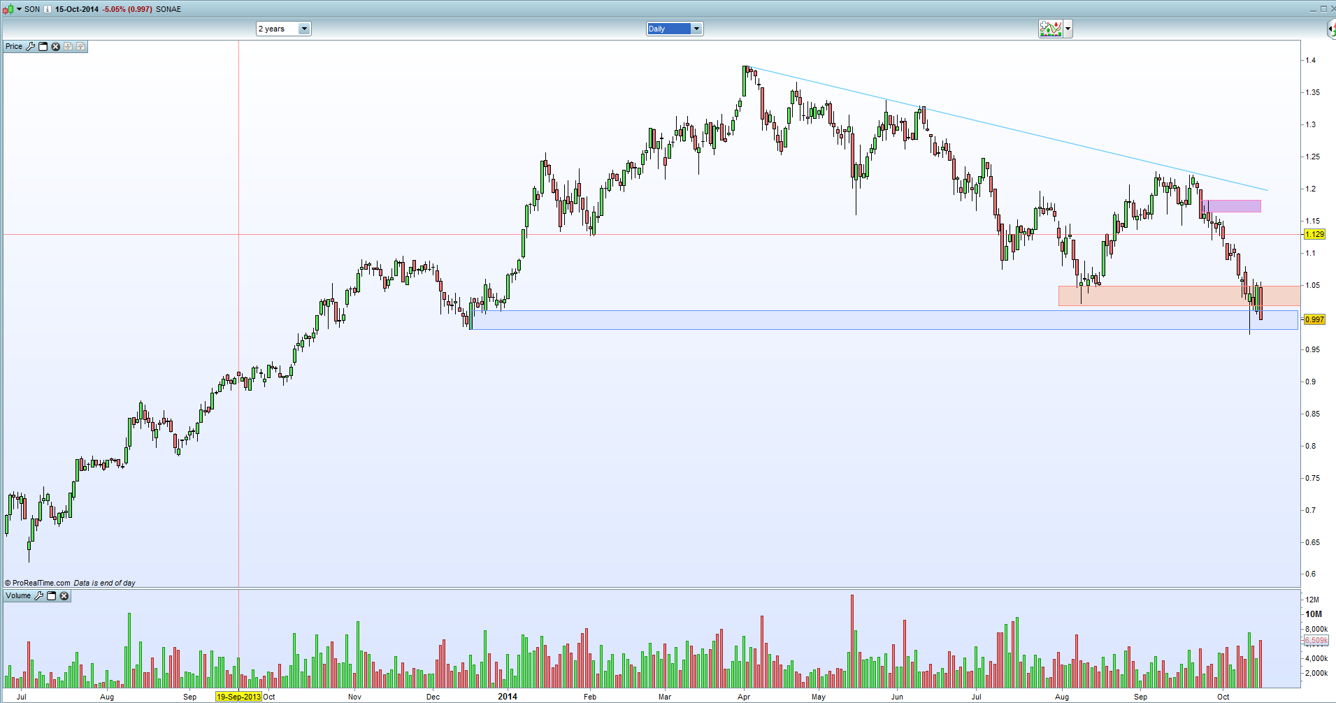 Eu não sou muito estendido em padrões desse género, mas se a sua formação fizer sentido, então esse H&S aponta à zona dos 70 e poucos cêntimos, zona de suporte significativa na SONI.