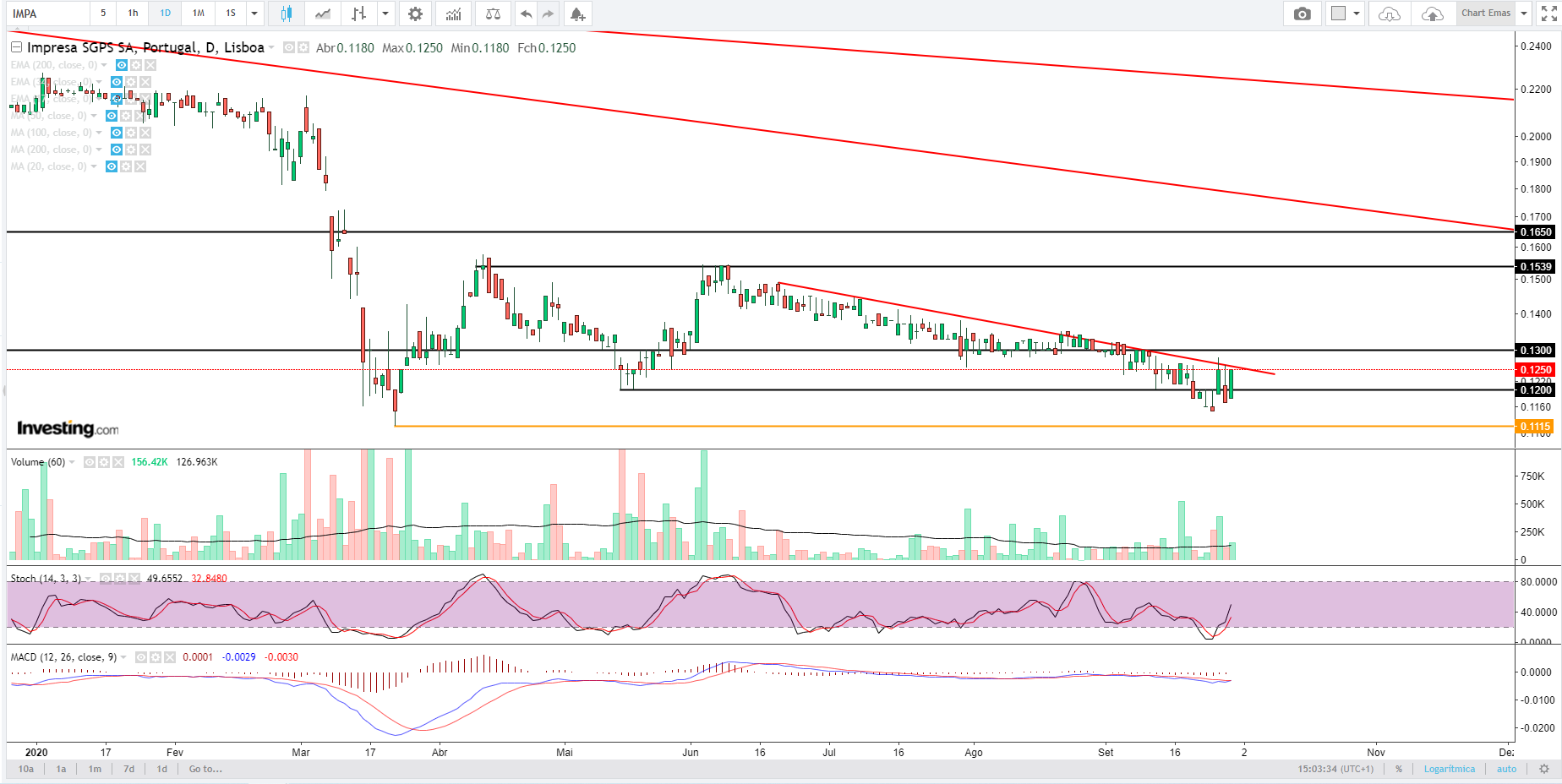 A impresa a tentar sair dessa zona. Necessita de uma demonstração de força amanhã ou volta para os 0.1115€.