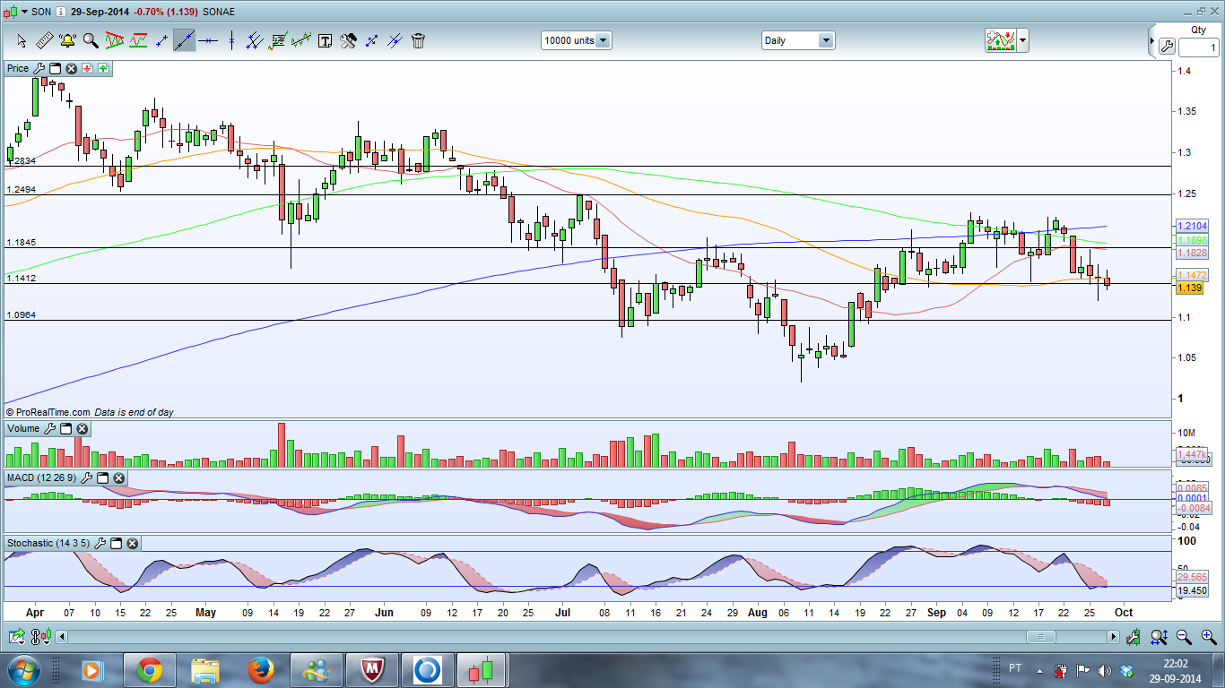 Começo a duvidar que os 1,14 aguentem. A cotação já está claramente abaixo das MME 21, MME 50 e MME 200 e a perder momentum. Acredito que possa visitar o suporte por volta dos 1,11. Estará aí a zona das grandes decisões?