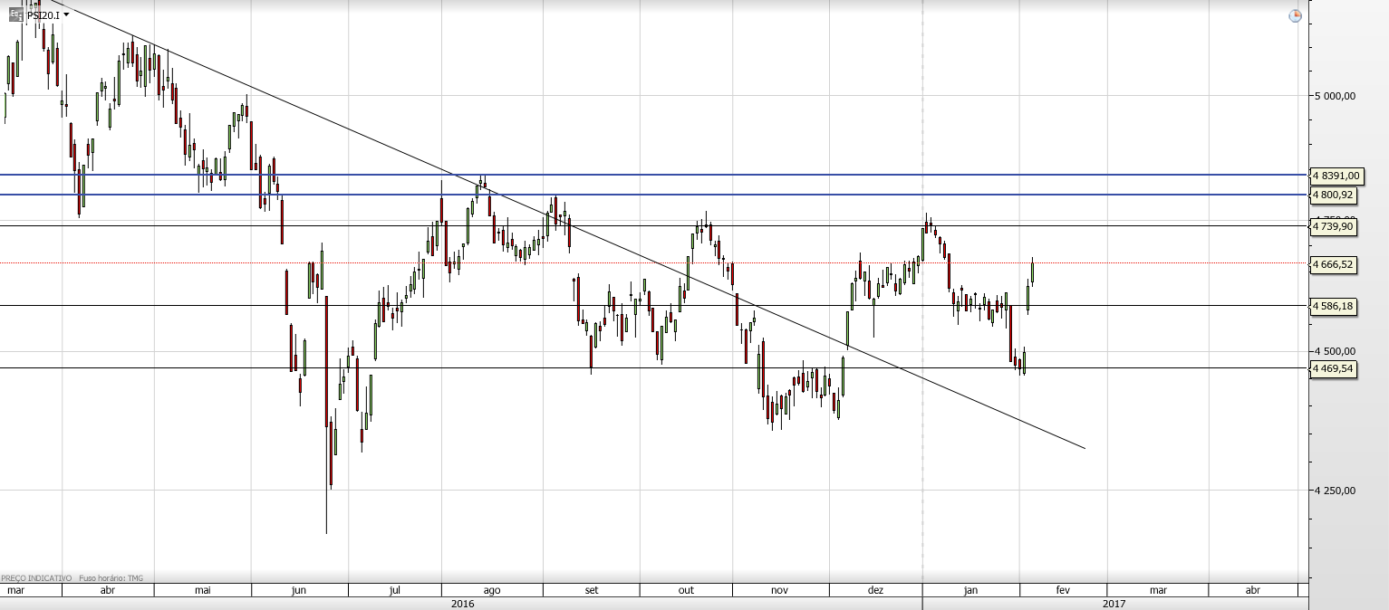 O PSI-20 fechou a sessão de quinta-feira, 2 de Fevereiro, nos 4.498,21 pontos. Na abertura da sessão desta sexta-feira, 3 de Fevereiro, marcava 4.577,19 pontos, o que representa uma valorização de 1,76%.