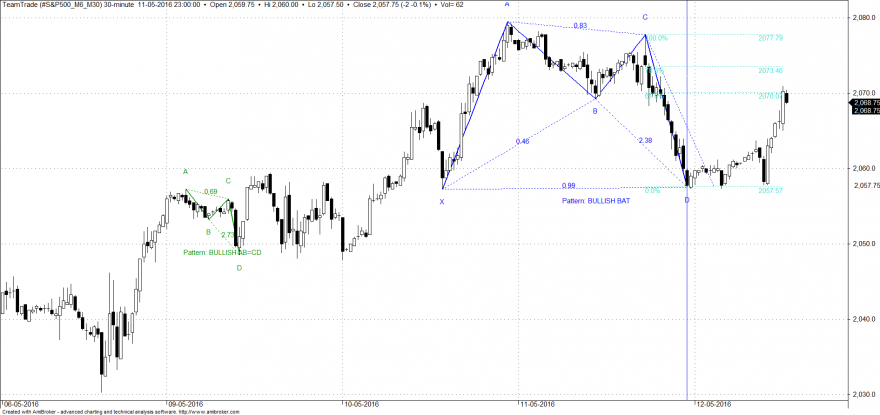 Quanto à análise do SP500, desta vez ao índice (dinheiro) e no diário, uma vez que a maioria se orienta por ele e para que os valores das minhas projeções dados anteriormente, mas para CFD's, não sejam mal interpretados, fica o desenho com o movimento esperado e de grande probabilidade de acontecer a avaliar pelo semanal e diário, até ao momento.