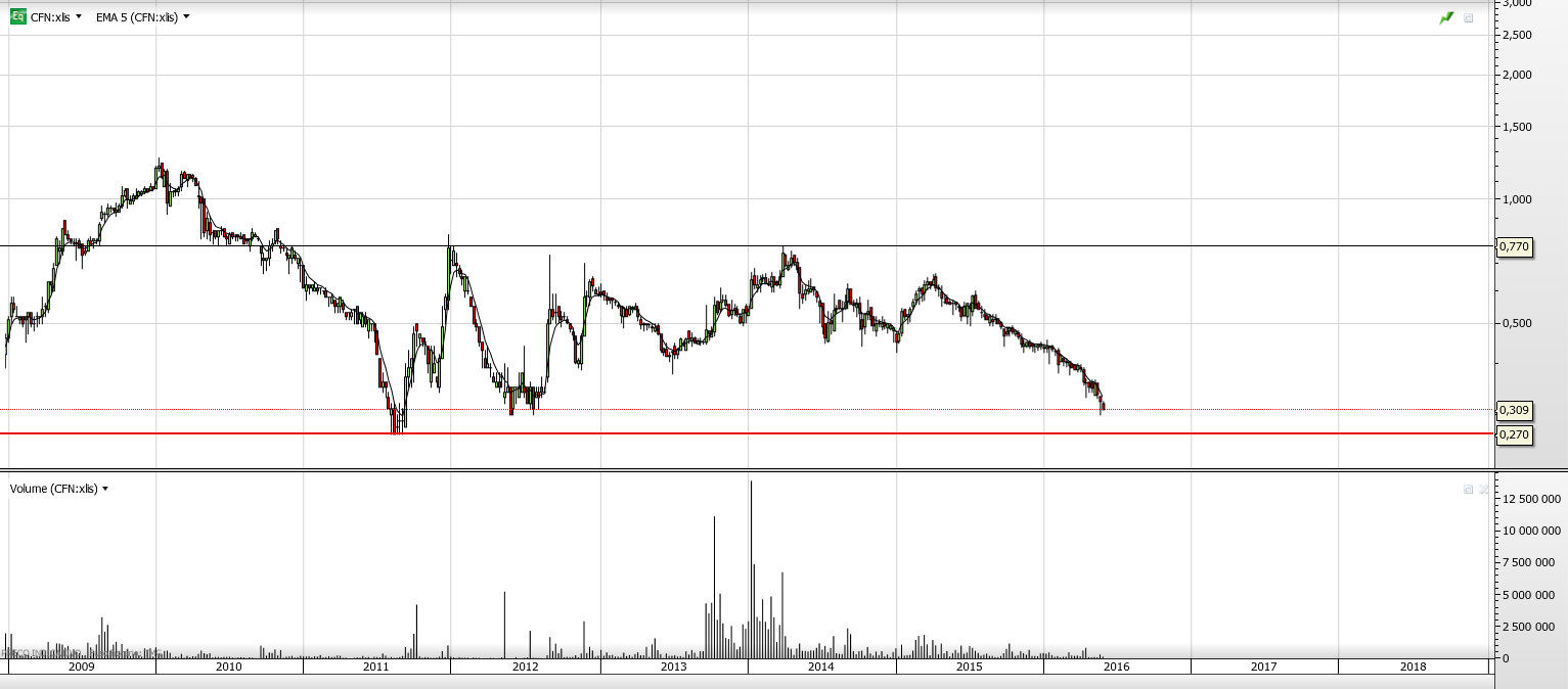 Já faz várias velas seguidas de queda no gráfico mensal, cada vez é mais provável uma reação... sim, porque a Cofina não está falida...