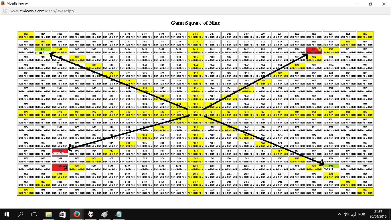 ) do sp pelo square 9,do dia 30 do mês passado que entretanto precisa de ser actualizado.Os maximos e minimos relativos distam aproximadamente 90 graus,o grafico é diario,o ponto de interrogaçao seria o minimo.