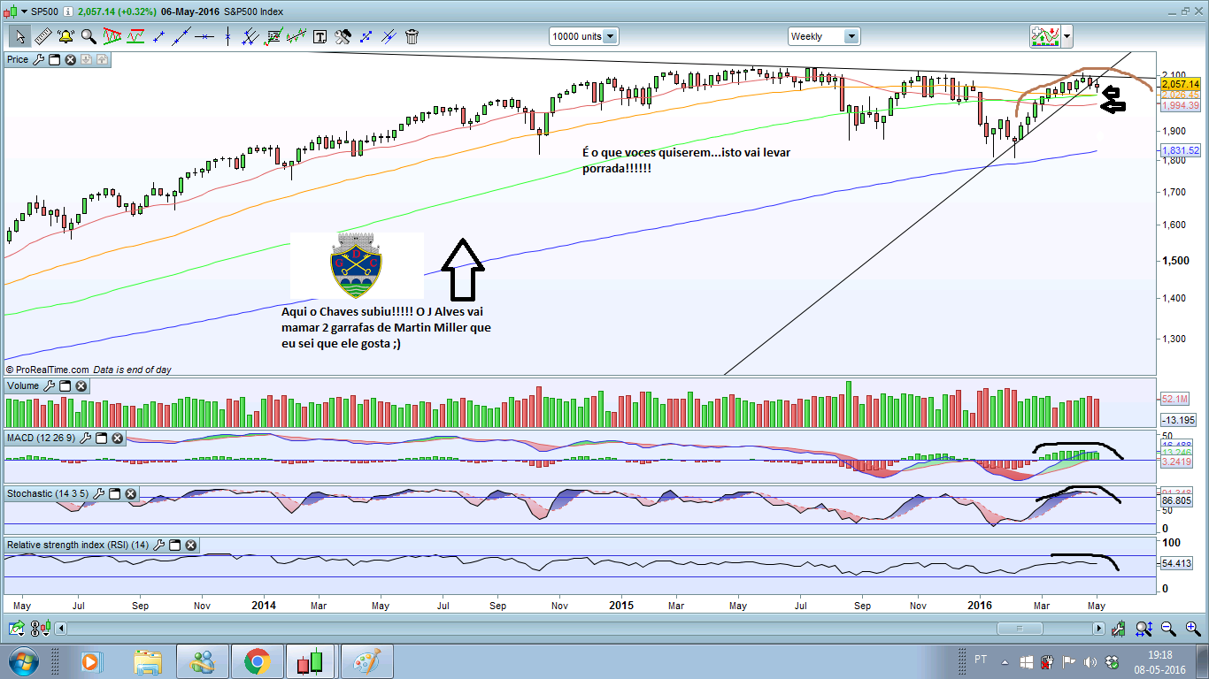 Deste modo o meu Prognóstico é uma ida à linha inferior da Wedge e/ou aos 2081 para depois o Preço ir direitinho à M50 no Semanal. É pelos valores da M50 que espero que a próxima semana acabe.