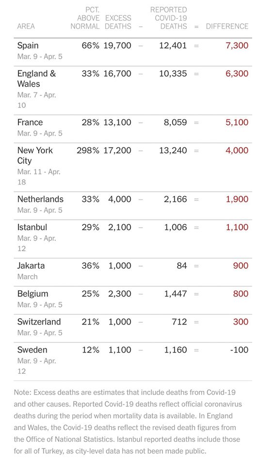 Qualnhick Escreveu:Das duas uma: ou todos estes países andam a contar mal as mortes por Covid menos a Suécia, ou então o confinamento forçado está a causar mais mortes extra Covid.