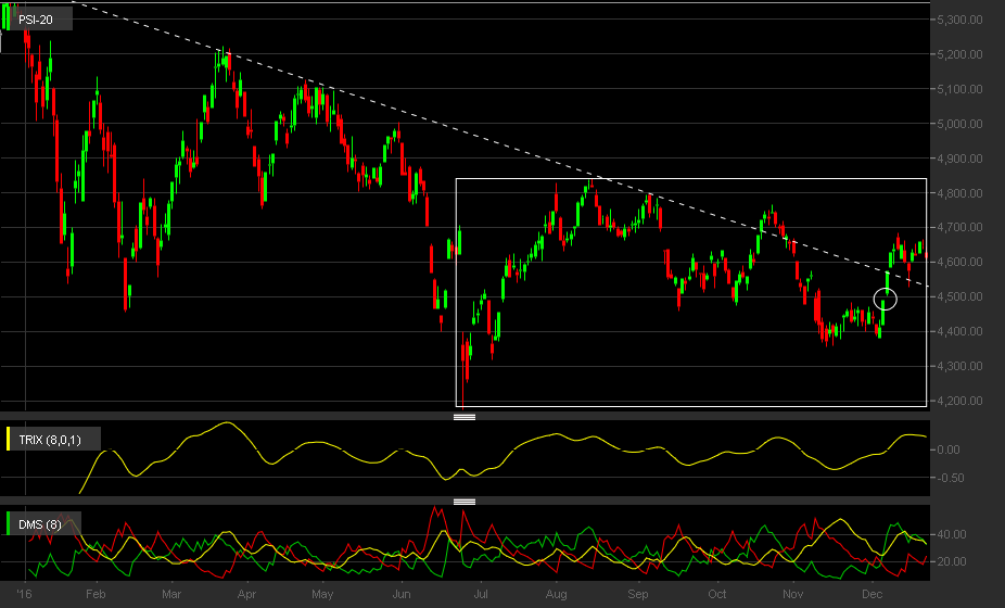 Nesta morna época natalícia (nos mercados, claro, porque fora dela é bem quente), o PSI vai tentando devagarinho chegar à importante resistência de curto/médio prazo.