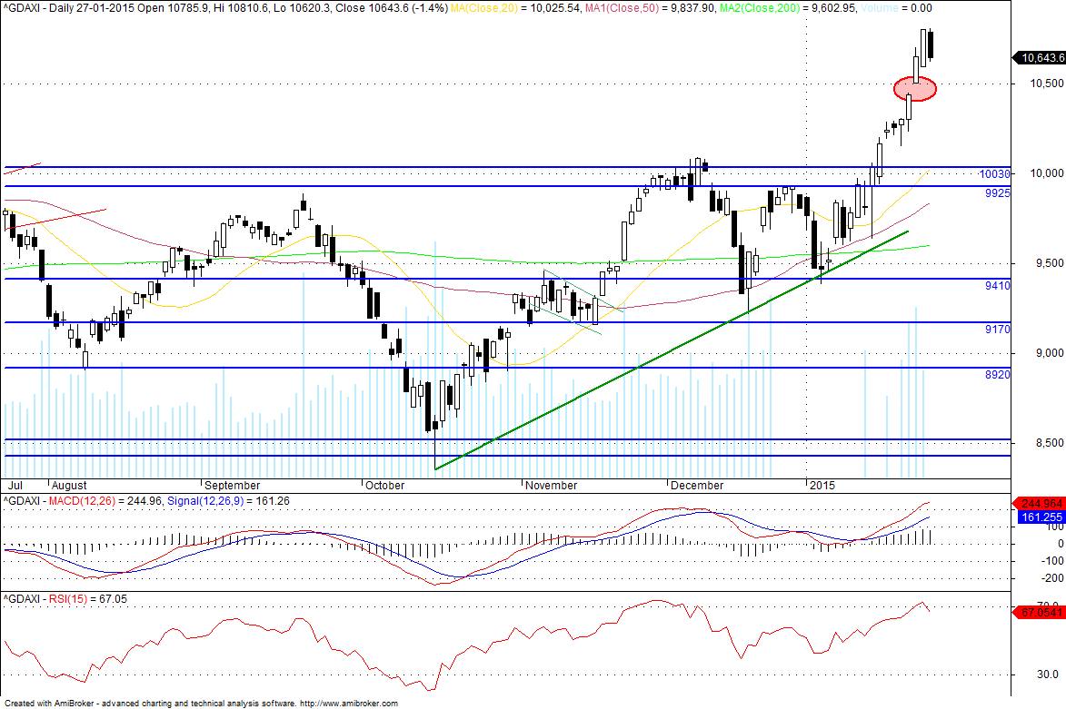- a queda de ontem aliviou indicadores e põe o DAX a caminhar para o valor psicológico dos 11000