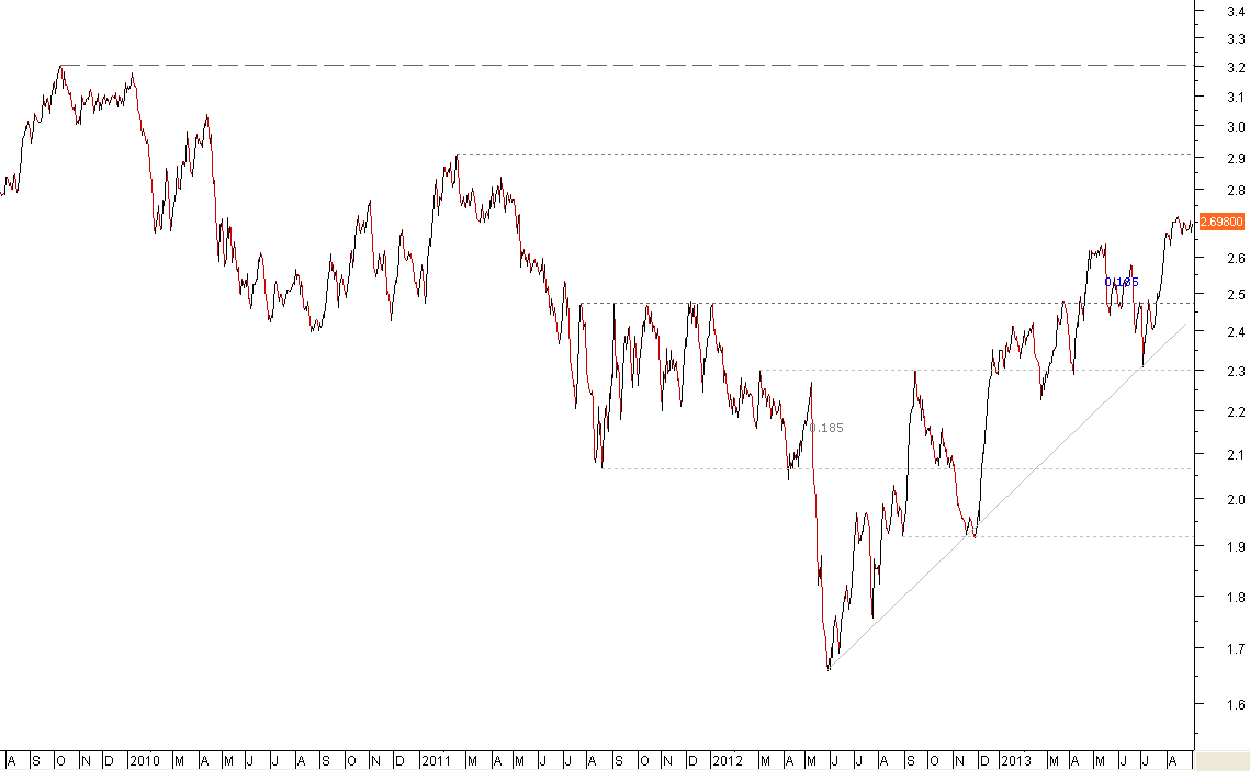 Se houver correcção o 1º suporte será na zona dos 2,63.