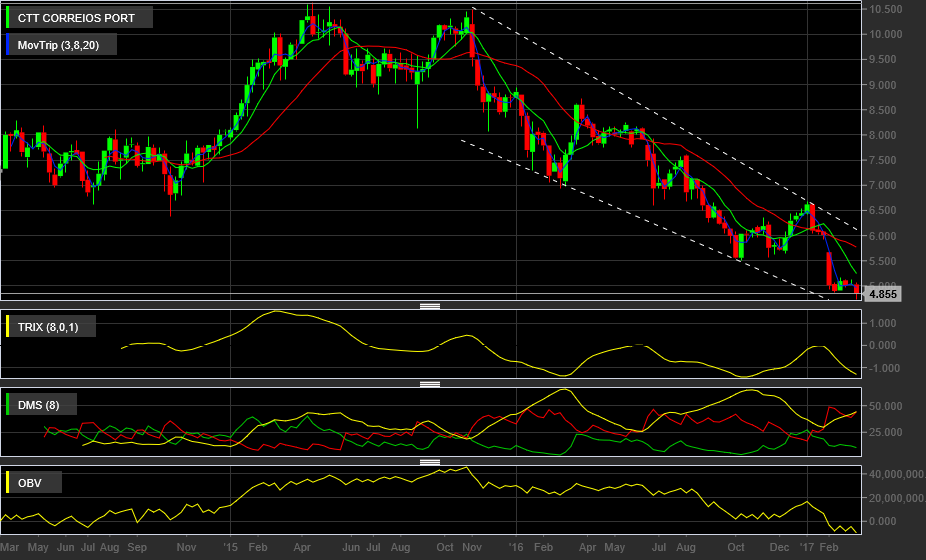 Nos próximos tempos a história da cotação dos CTT vai-se escrever abaixo dos 5 euros. Os CTT, para já, disseram adeus aos 5 euros!