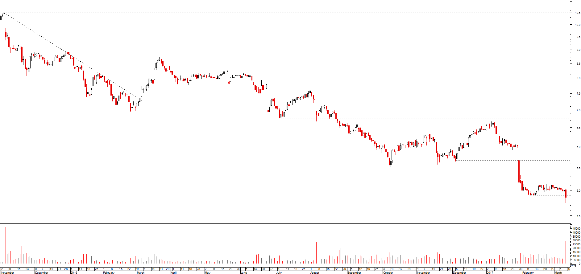 Quem comprou desde 30/01/2017, dia em que a cotação desceu dos 6 euros para os 5 euros, até ontem, para caçar o dividendo, vai, certamente, durante algum tempo, perder com o negócio!