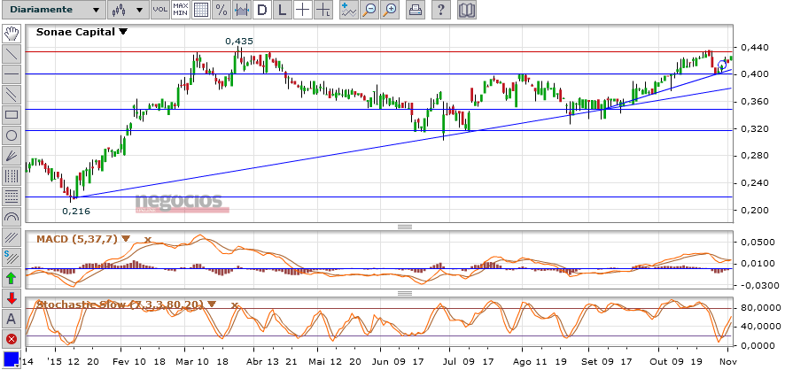Tem de romper com consistência os 0.44 para se poder posicionar no próximo nível que será na casa dos 0.5 os resultados que saem hoje puderam ajudar a dar esse estimulo que está a faltar pois porque a nível de negociação estas duas ultimas semanas tem sido alta muitos títulos negociados.