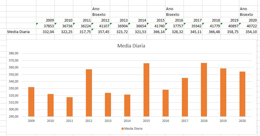 Neste ano, até hoje, morreram menos pessoas do que em 2012, 2015, 2018 e 2019, seja analisando o total seja considerando a media diaria.