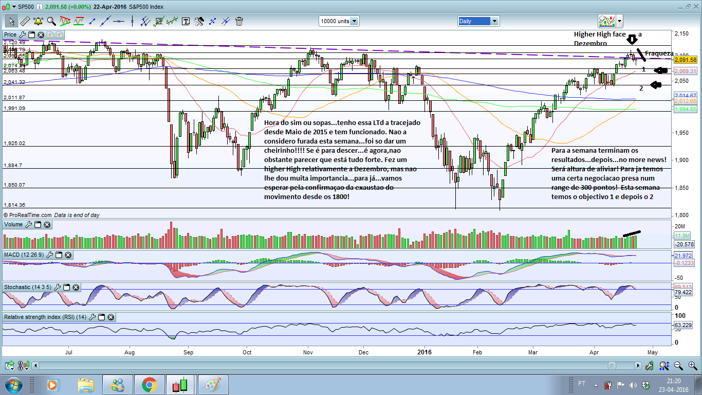 Meus amigos,o sp está interessante,se a tendencia no adx no semanal continuar a ganhar força,vamos ter concerteza o rompimento dos topos,pelo obv já foi.Nao sei se estou a ver isto bem,mas os proximos alvos serao os 2113pts(ja la esteve bem perto)e a seguir 2149pts,será?