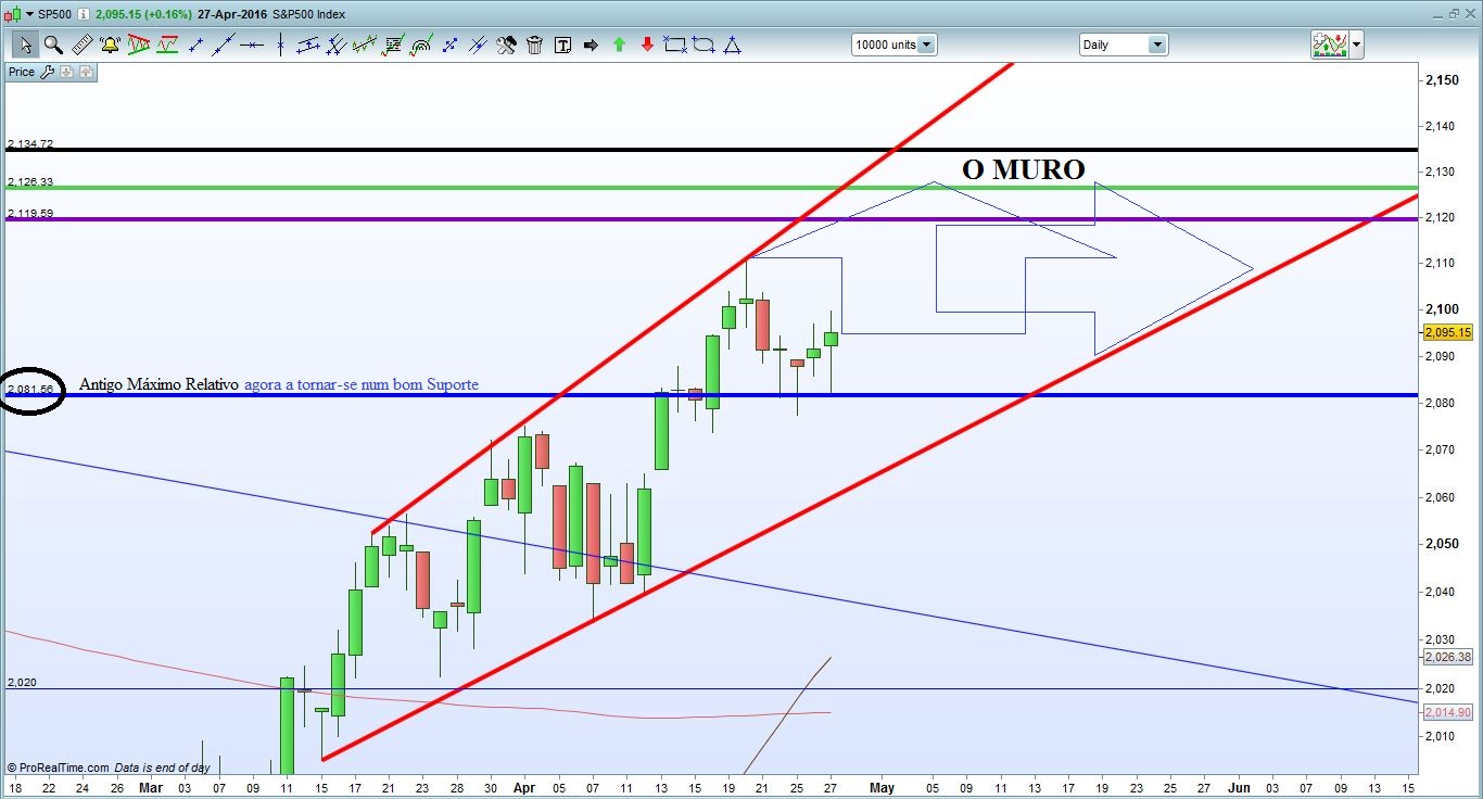 No que diz respeito ao sp500 ficam os graficos diario e semanal :