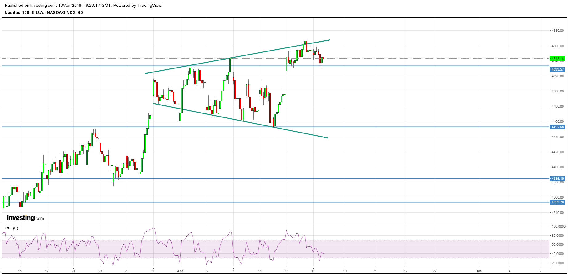 a relaçao petroleo/dolar é conhecida, como nao houve um acordo para o congelamento da produçao na opep, o petroleo ira certamente sofrer com alguma intensidade. o peso das industrias ligadas ao petroleo, embora nao seja tao visivel é preponderante em qualquer indice. o index dollar está em niveis de sobcompra e a tendencia do indexdolar no medio prazo será para subir, no setor financeiro goldman sachs apresenta resultados fracos, no tecnologico microsoft apresente resultados com expectativas baixas.