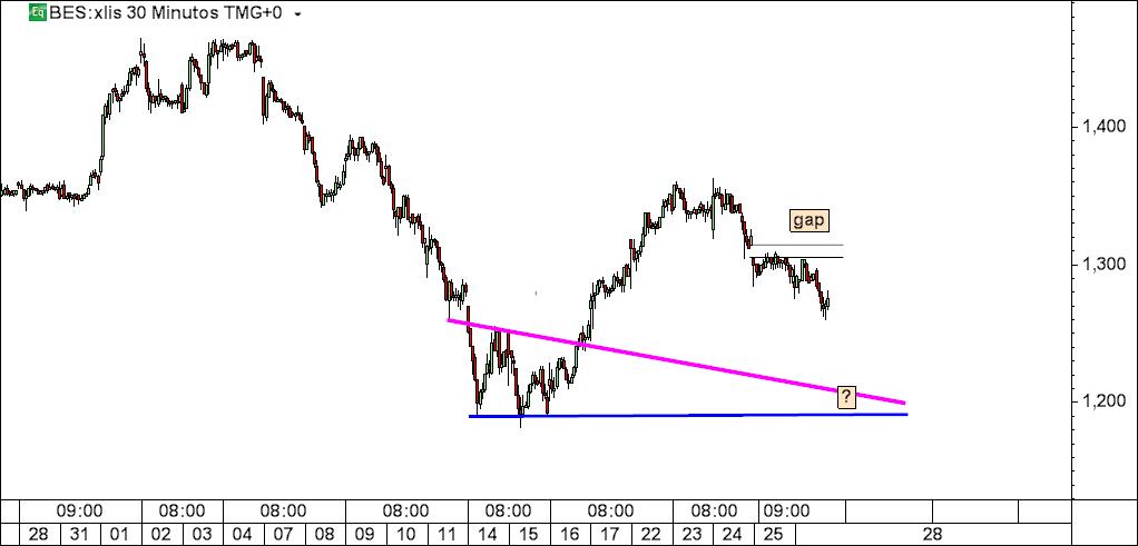 Como não vi nada escrito sobre isso (se calhar não procurei bem) não quer ter a paciência de sintetizar como se desenham, o que se interpreta deles e já agora, se não for muito incómodo, o que interpreta deste seu gráfico relativamente ao BES. Fiquei com curiosidade e o meu amigo parece-me especialista neste tipo de figura técnica.
