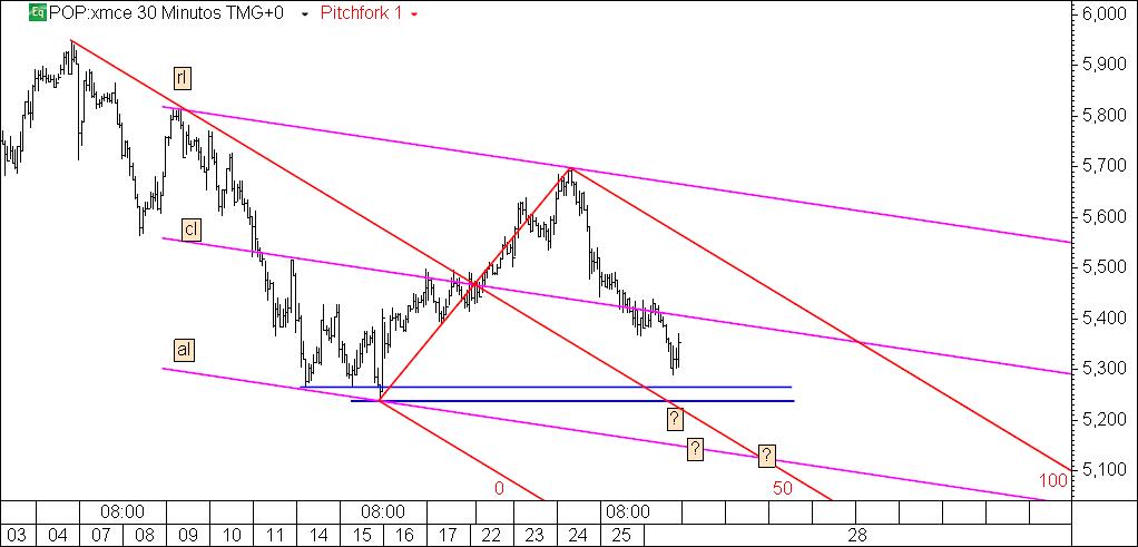 Apesar no caldeirão não ser muito usual utilizarem esta ferramenta, serve para marcar e destacar canais de tendência de alta ou baixa, bem como níveis de suportes e resistências. No caso do BES serviu de resistência nesta ultima subida e respectivo potencial formação de um canal descendente.