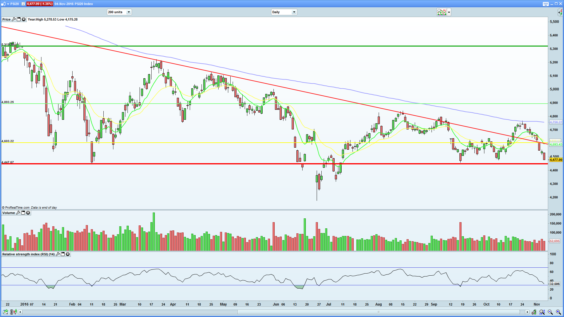 Depois de traçar os 4600 pontos, foi em menos de um fósforo que o PSI20 se pôs outra vez em cima da linha vermelha.