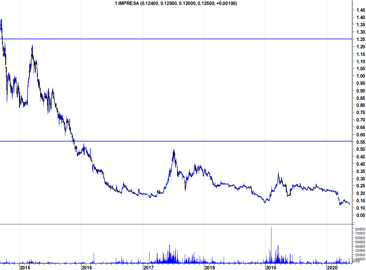 Um ligeiro entusiasmo e volta a ceder. Difícil esta Impresa, qualquer patamar funciona como resistência, agora está em 0.137, vamos ver até onde será a queda.