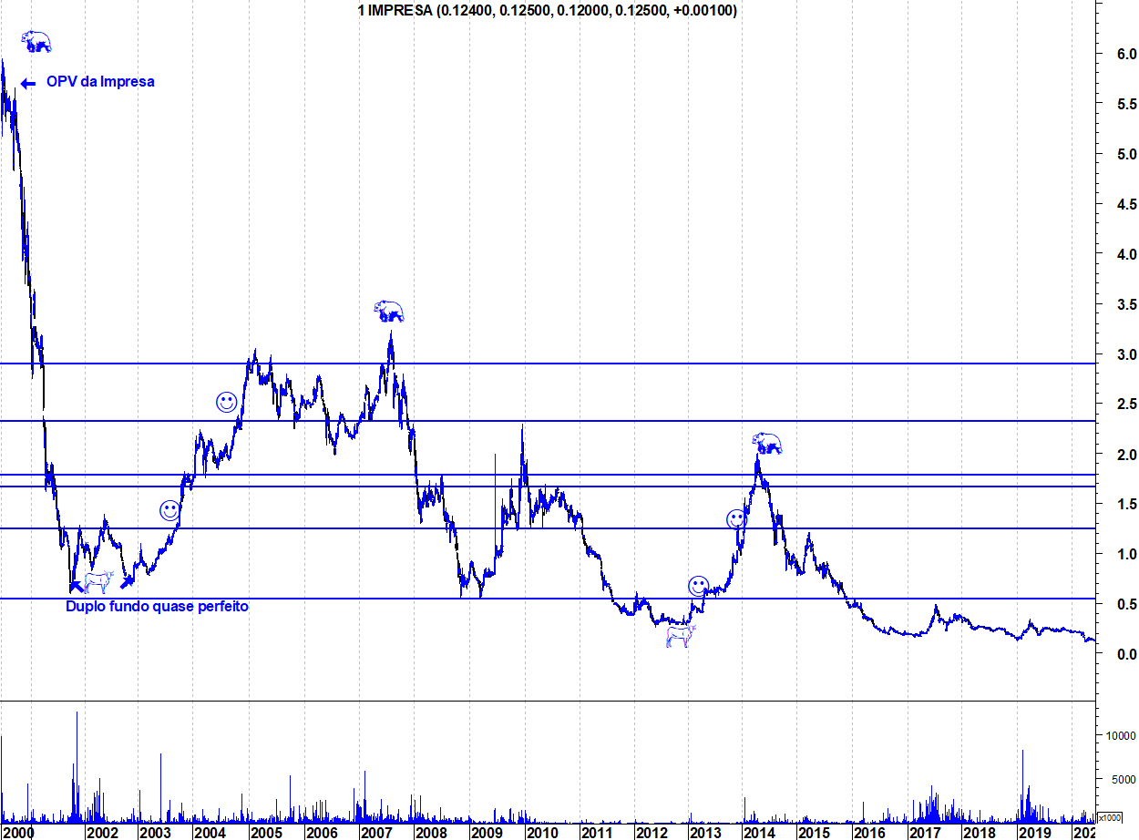 Ulisses, acreditas mesmo que se a Prisa mandasse fechar a Tvi isso não teria impacto na Impresa? Eu não acredito, acredito que a Impresa dispararia sem que os ursos a conseguissem fazer cair de um certo patamar. Claro que o gráfico é sempre um farol, mas o farol está lá e dá sempre o mesmo tipo de luz, quer passe um bote, quer passe um iate. Que está bear, está, isso não discuto. Portanto, quem tem acreditado nas quedas está claramente vencedor. Como chegámos aqui? Com muitas hostórias pelo caminho, uma felizes, outras nem tanto.