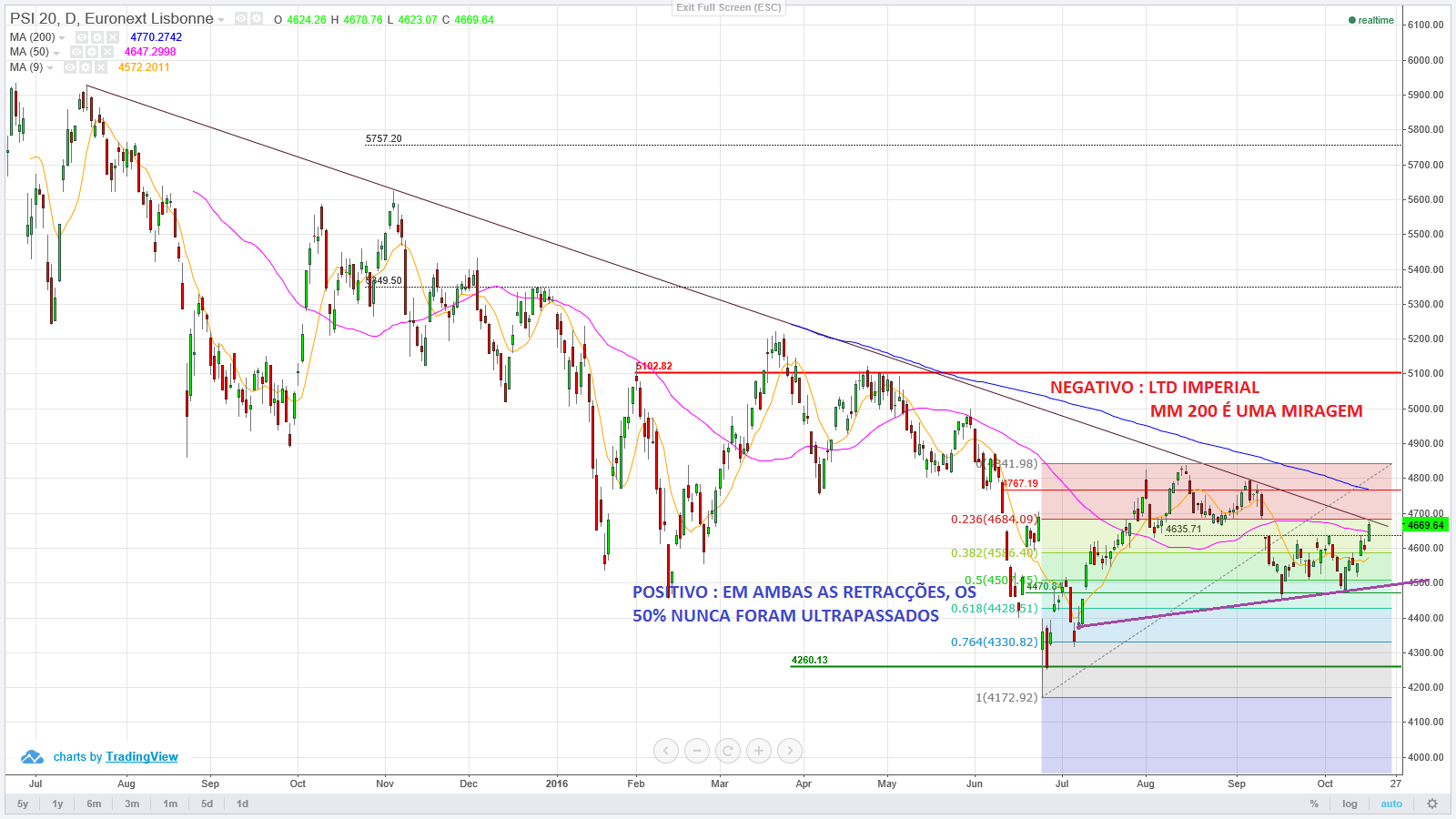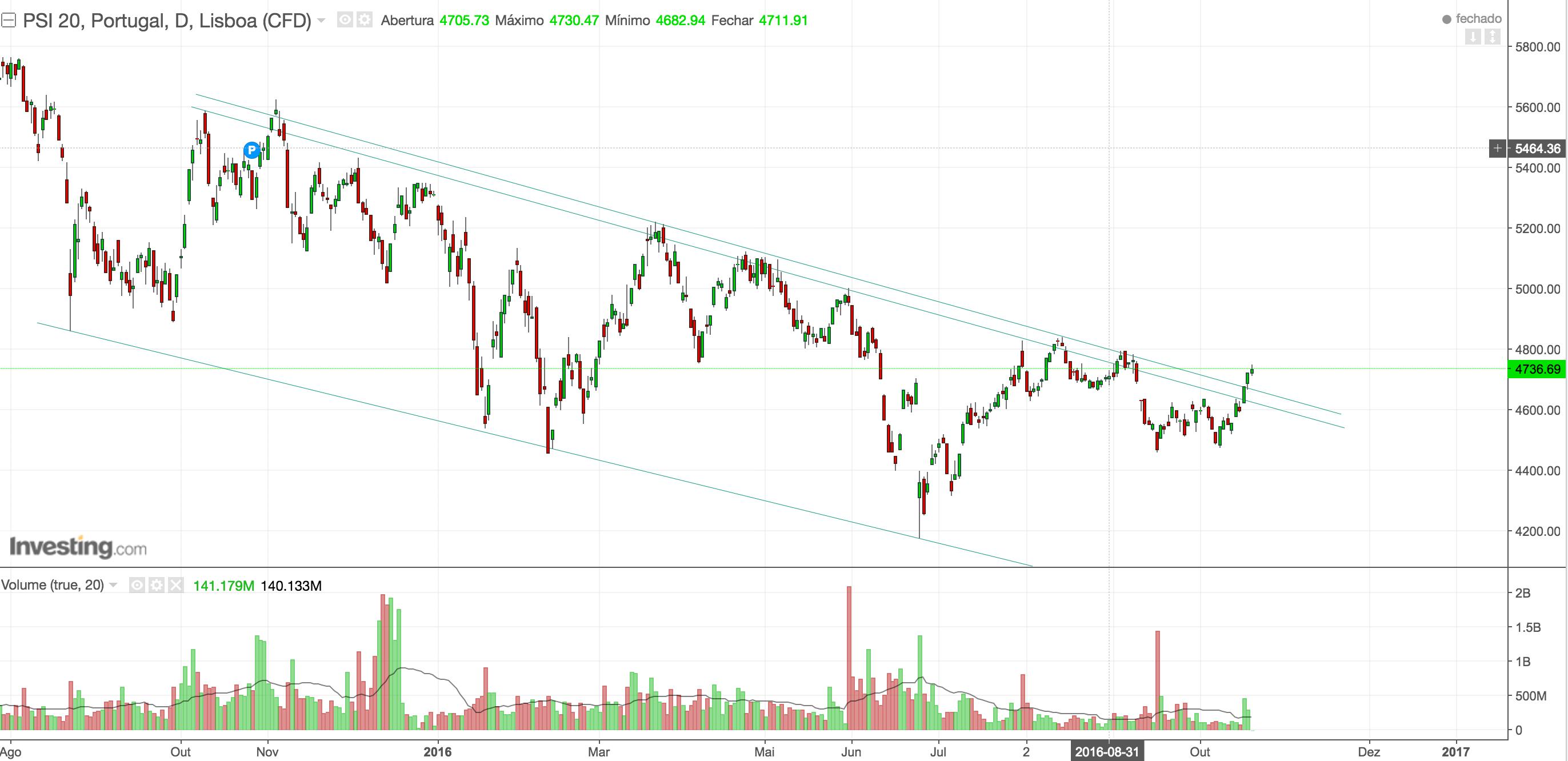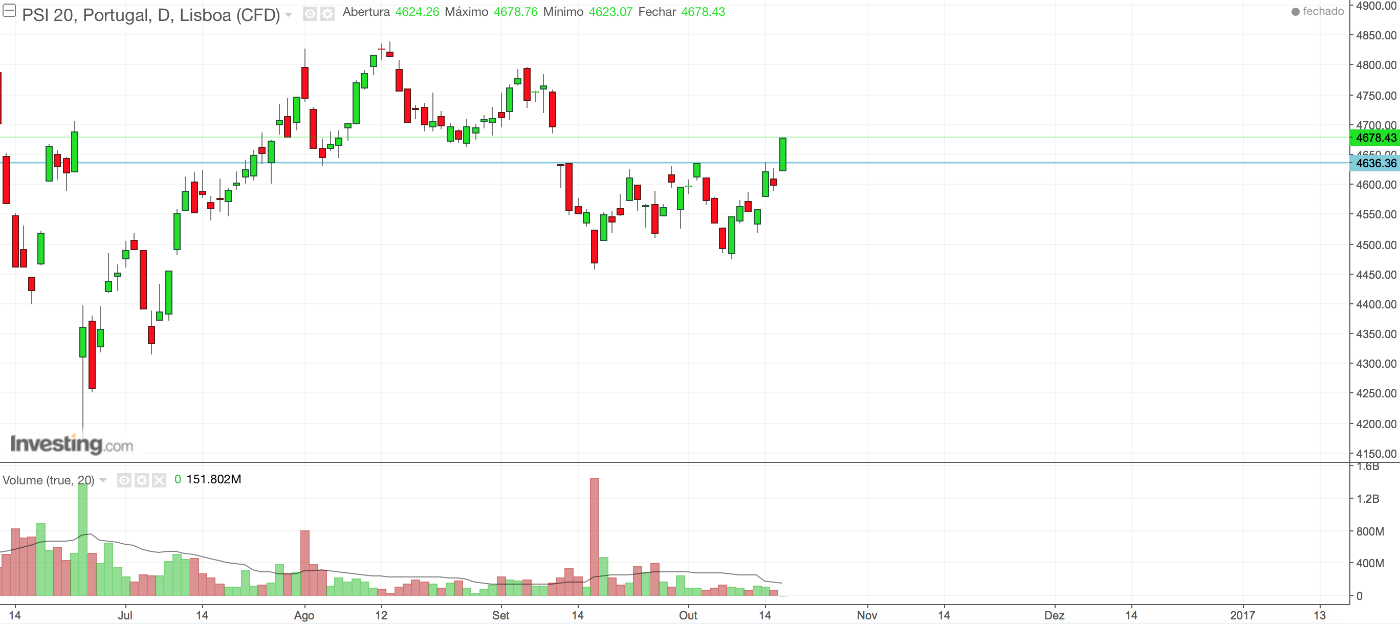 ativo Escreveu:Em 04/10/2016:ativo Escreveu:Hoje, o PSI 20 fechou nos 4635 pontos e prepara-se para fechar o "gap" e romper a LTD (talvez temporariamente).