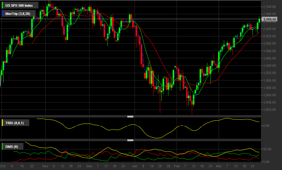Esta vela do Diário está com muito Power.... A vela do Semanal está com muitoo Power.... (a M50 a segurar bem o bicho). A vela Mensal de Março mostra muitooo Power... a vela do Trimestre ficou um Martelão... onde está a fraqueza? Só se for mesmo nos tais indicadores, mas eu pessoalmente desconsidero os indicadores e não lhes ligo nenhuma por isso...... Sigo o meu Prognóstico e nele o Preço deverá ir ao intervalo entre os 2115 e os 2120 e ai é que a porca pode torcer o rabo, pois será importante o facto de fazer ou não um máximo anual superior a 2015 (e consequentemente máximo de sempre).