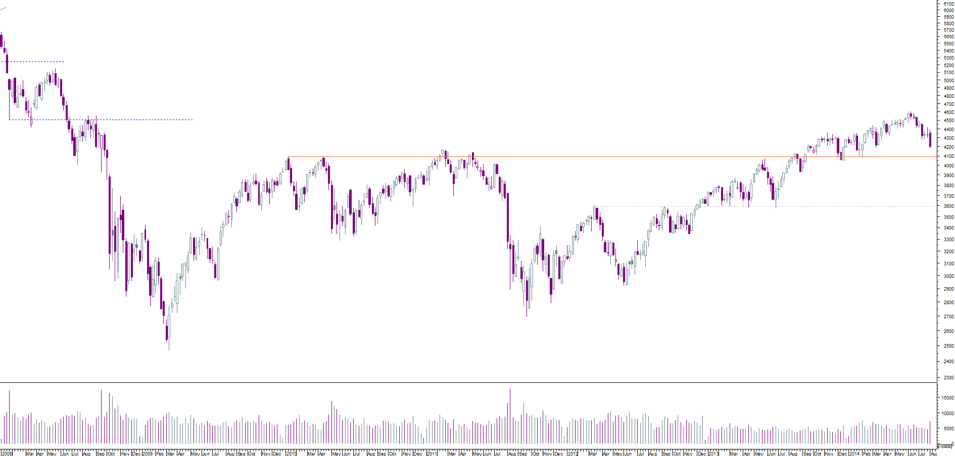 o CAC ainda não conseguiu limpar a importante resistência dos 4300.