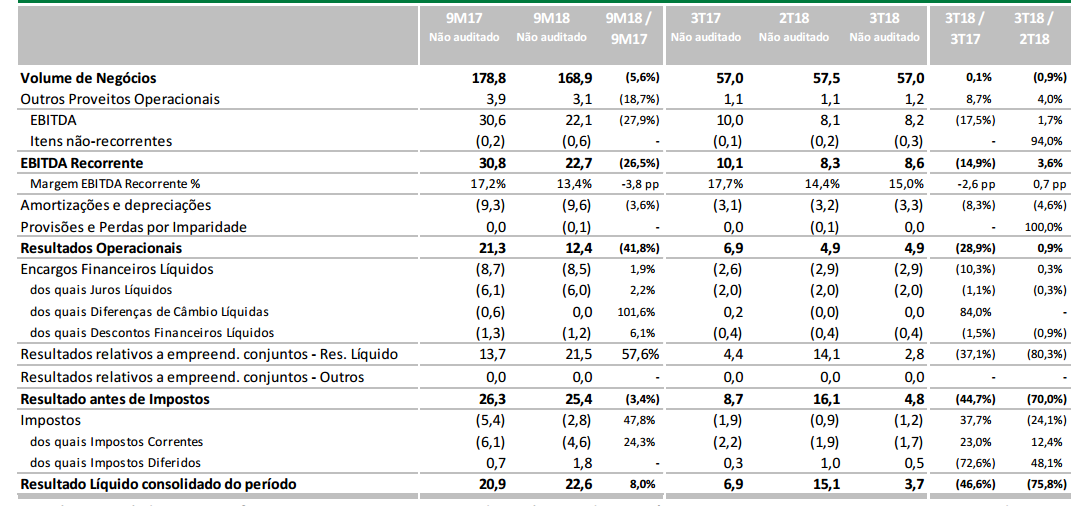 Os resultados no 3º TRI CAIRAM no período homologo 46% , de 6.9 para 3.7 Milhões de euros