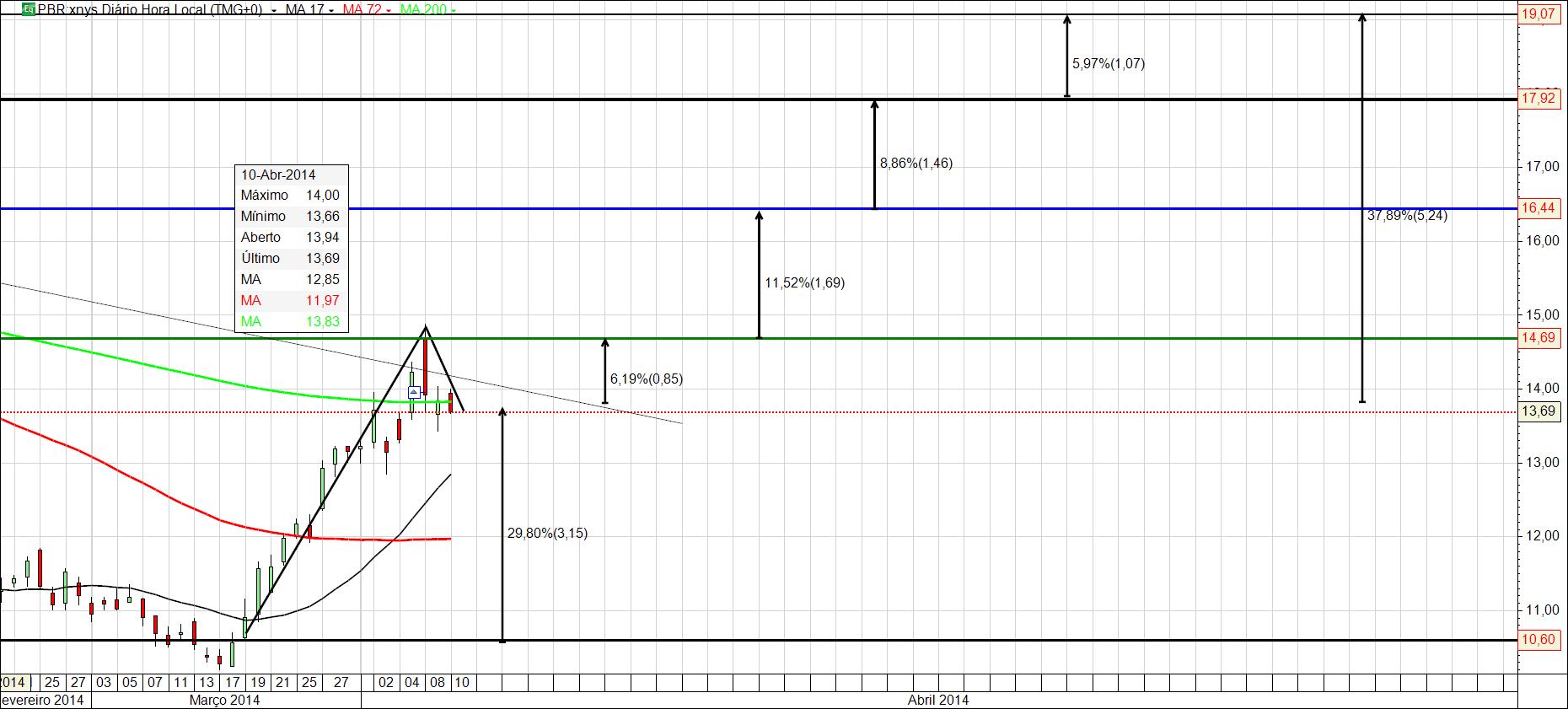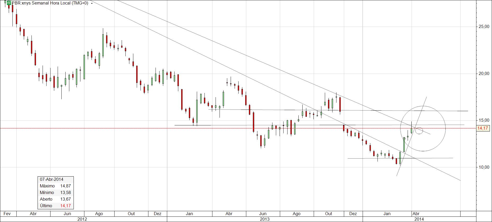 A PBR encontrou uma nova resistência que também é uma nova linha de rompimento da tendência.
