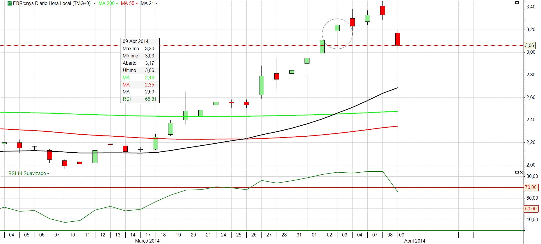 Bem nestas situações e no quadro geral, o melhor é aguardar pelo fim do dia, porque se a tendência de baixa instalar-se, o preço da EBR que esta - 8,09% vai descer ainda mais ou estabiliza, assim como a PBR. Se eu deveria ter esperado pelo dia de hoje na compra da PBR? É claro que sim. Mas vamos aprendendo, eu aguento.