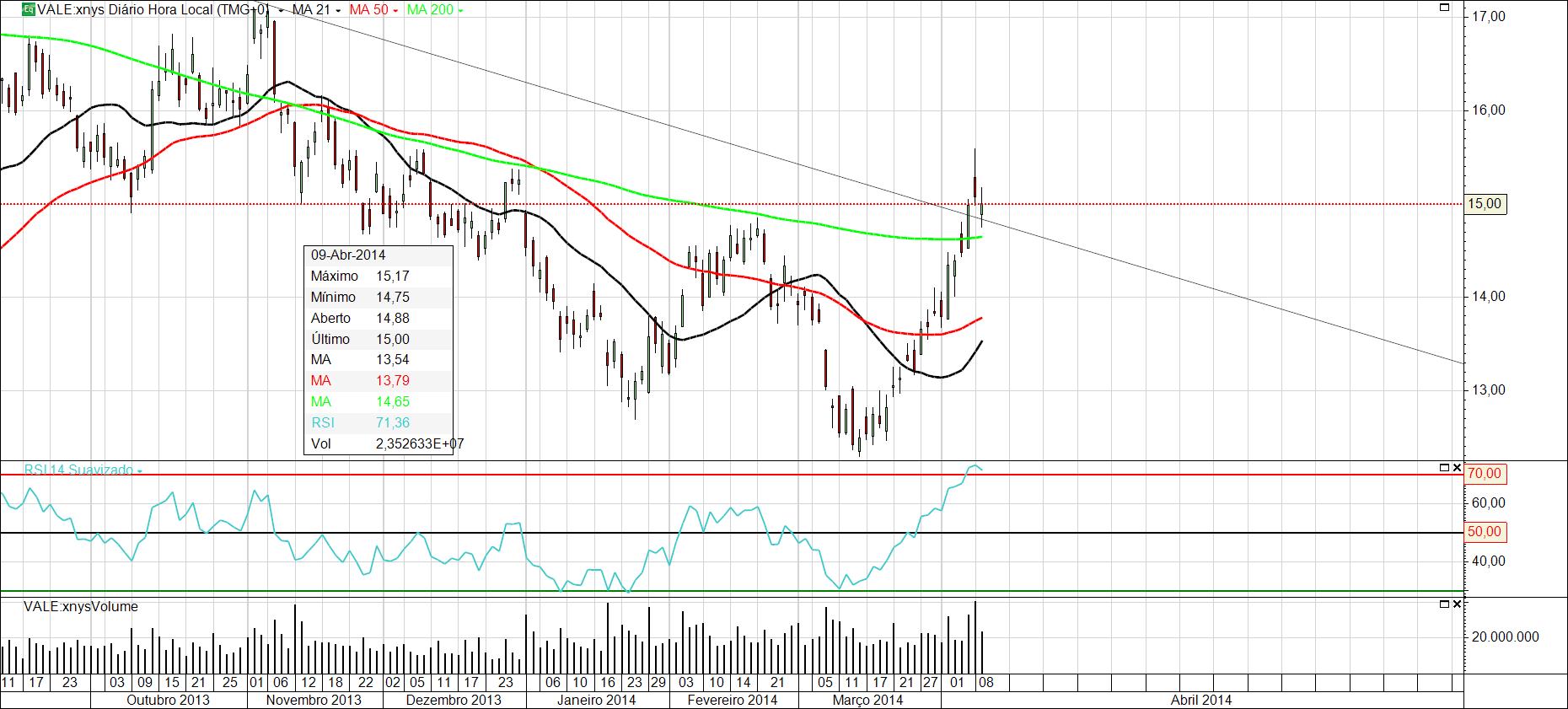 Tendencias e sinal. Ela já rompeu duas linhas de tendência, está a corrigir mas não está definido até onde, entrentanto há um sinal de nos 13,83 usd, para um bull longo.