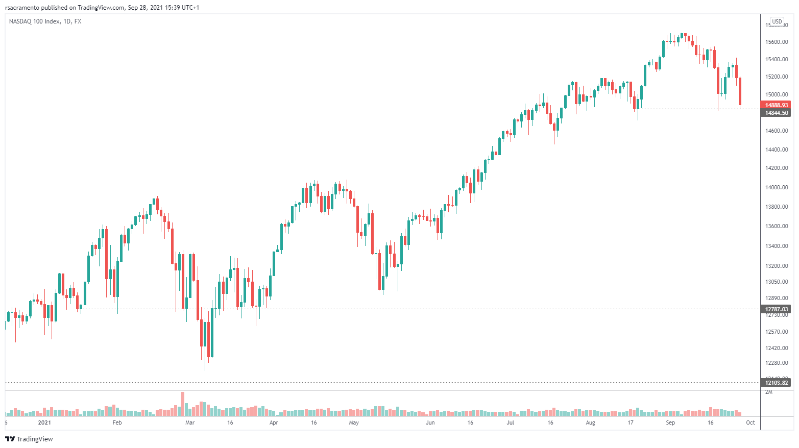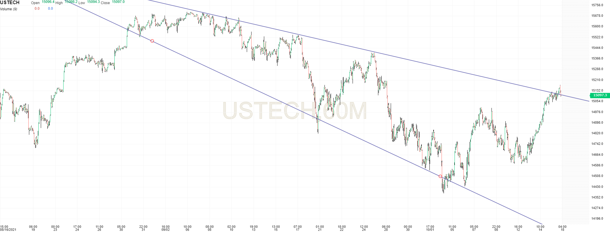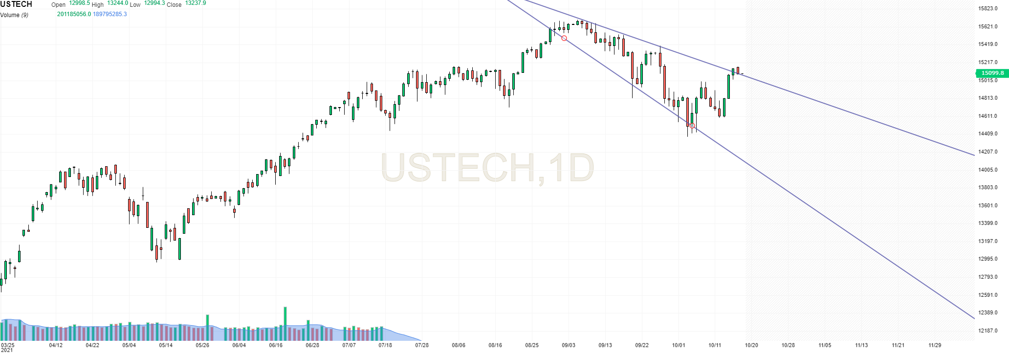 deixo abaixo uma análise técnica ao nasdaq 100 com uma diferença temporal de 2 meses e 1 semana para se observar a evolução do mesmo.