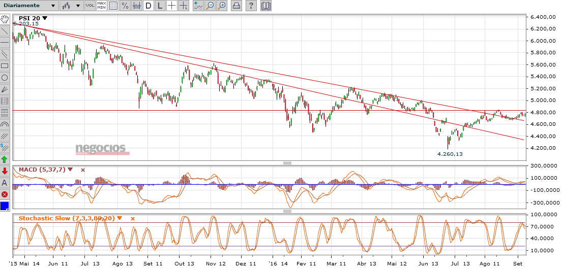 Para que esta ideia se concretize espero uma reação em alta acima da zona dos 4700 pontos.