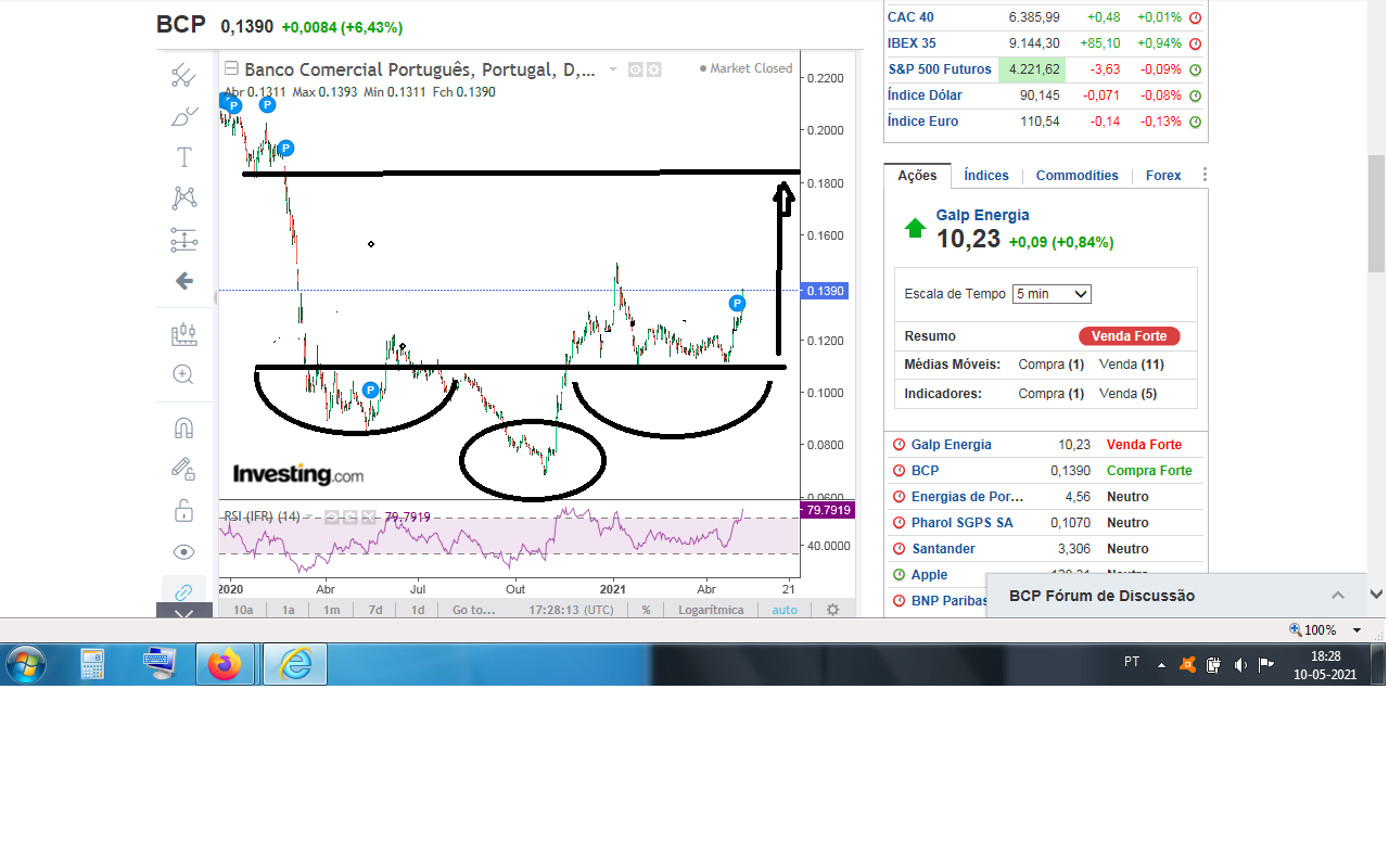 Eu penso que o BCP, tem tudo para seguir os Bancos Espanhóis, ou seja, a cotação dos Bancos de Espanha tem uma valorização positiva de dois dígitos em 2021. O BCP está um pouco atrasado nesse percurso ascendente e não será errado referir que no ultimo trimestre de 2021 e no ano de 2022, o BCP inicie um longo caminho ascendente ( tendo como fundamento o percurso que os bancos em Espanha estão já a fazer).