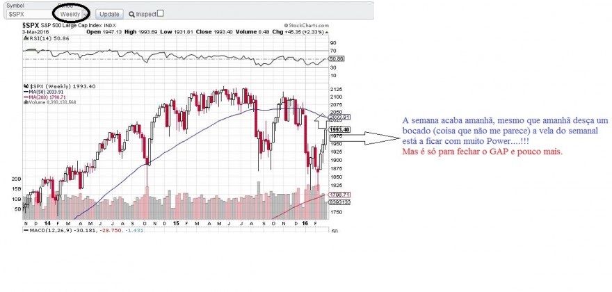 Respondendo à questão que coloca: A razão é muito simples e nem é preciso grande ciência, apenas sentido prático. Não existem Gap`s abertos no semanal e os últimos que surgiram em 2009 e 2010 foram rapidamente fechados (também encontrei um de há 40 anos e outro de há 30 ambos fechados). Este activo demonstra de forma clara que não gosta de gap´s no semanal, é uma questão da sua personalidade e devemos respeitar isso. Eles são raros e quando por qualquer motivo surgem acabam sempre por ser fechados. Posto isto; porque é que este Gap haveria de ficar aberto?? Alguma razão convincente? Mas se duvidas houvesse o Preço encarregou-se de indicar o caminho quando fez o trio de velas que prontamente assinalei. Borlas destas dadas pelo Preço não aparecem com facilidade. Para finalizar; se já faltou mais de 12 ou 13% de subida para o gap ser fechado, porque é que agora que faltam pouco mais de 2% de subida ele não iria ser fechado? Por causa da Wedge? Ela também se pode prolongar um pouco mais e porque não fazer uma quebra em alta à laia de um falso break? (para já é isso que espero).