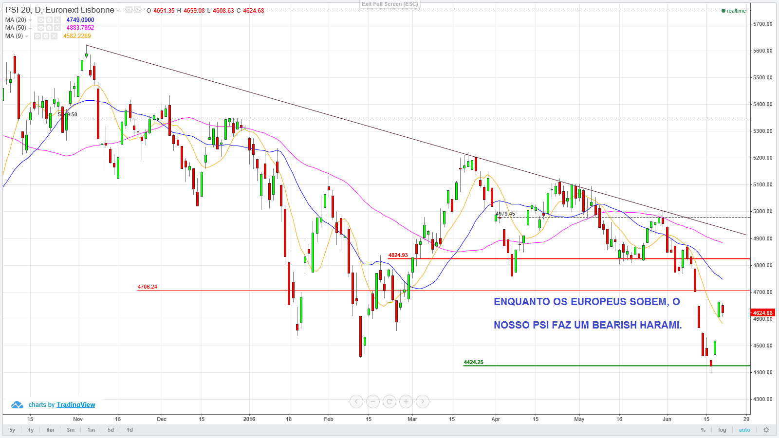 Penso que o BREXIT já foi descontado e que, por isso, o PSI 20, até dia 23/06/2016, já não descerá abaixo de 4432 pontos, valor atingido na 5ª feira da semana passada.