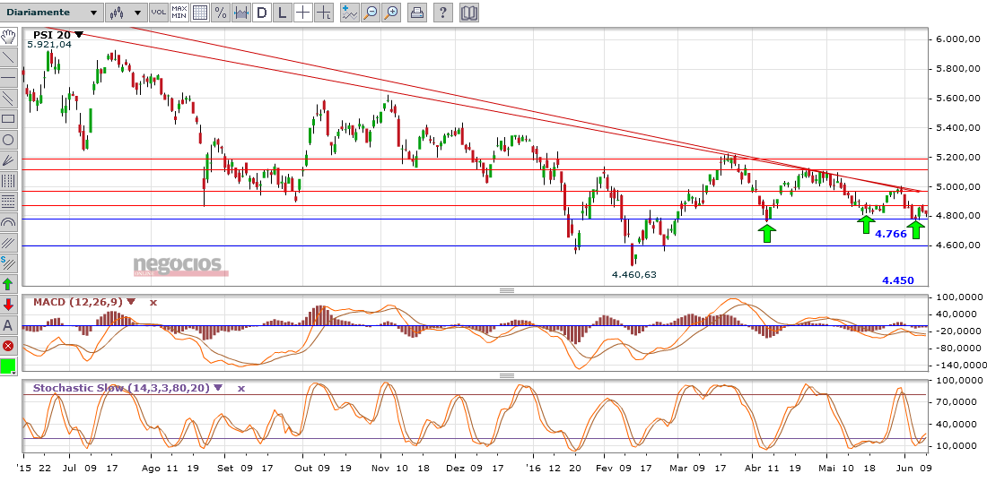 Se DAX aguentar aqui e ate recuperar para os 10000 pode ser que PSI aguente os 4750 e depois recupere qualquer coisa.