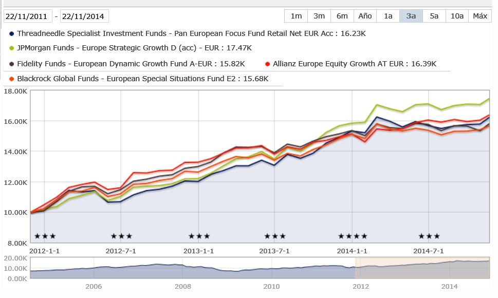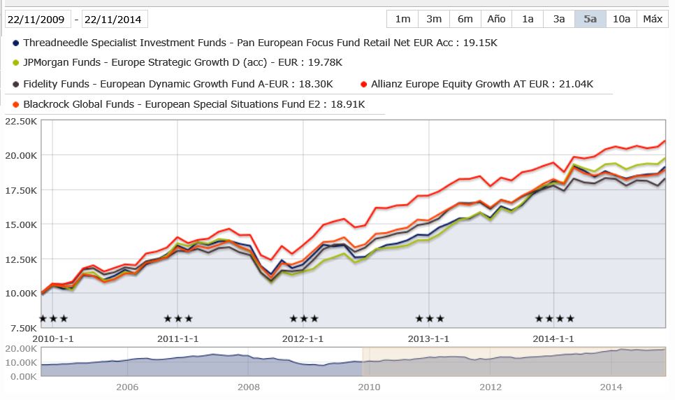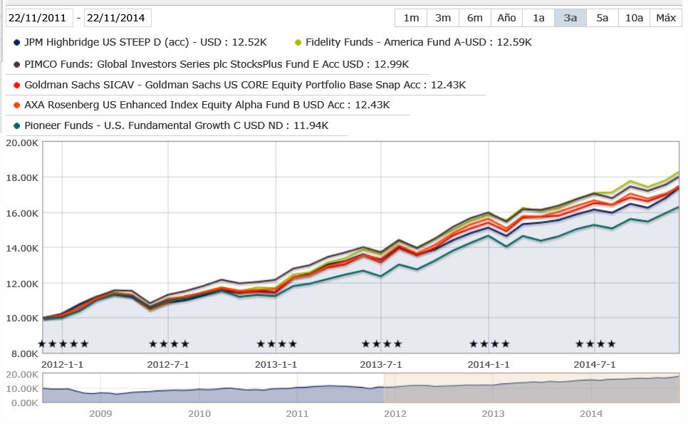 O fundo da Pioneer é o único que não pertence à categoria Morningstar EUA Cap. Grande Misto, pertence à Cap. Grande Crescimento, mas foi introduzido por ser um dos mais famosos nas escolhas dos foristas, na versão em EUR.