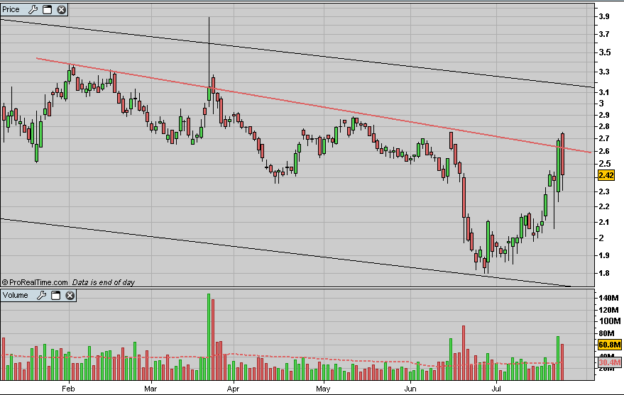 Bem, na minha opinião podemos esperar que a reacção ao fundo do canal possa perder força e talvez inverter ao tocar esta LTD na zona da elipse ~$2.5.