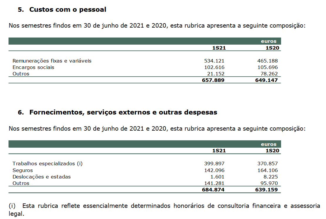 "A posição de caixa, líquida de responsabilidades é de 2,1 milhões de Euros em 30 de junho de 2021 e 2,9 milhões de Euros em 31 de dezembro de 2020."