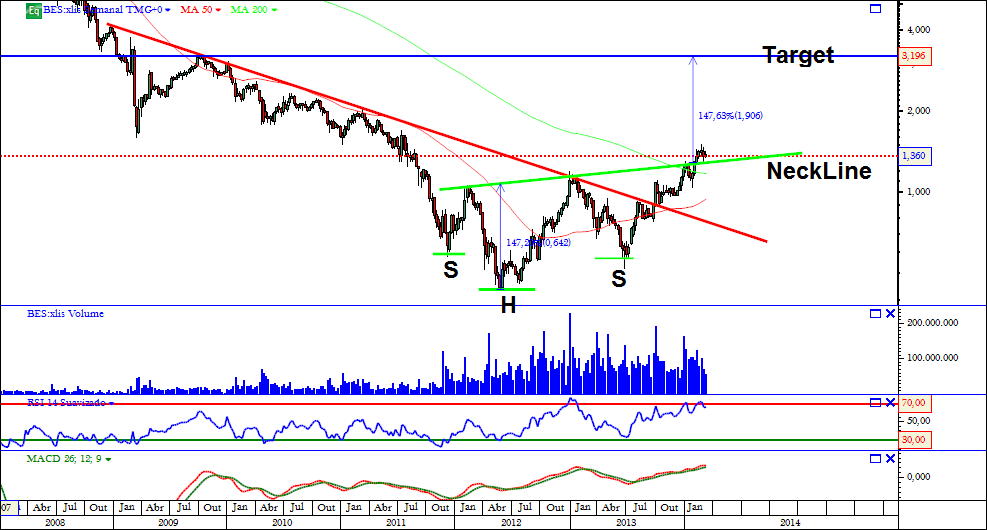 As implicações deste H&S poderam levar o BES acima dos 2€ no longo prazo.
