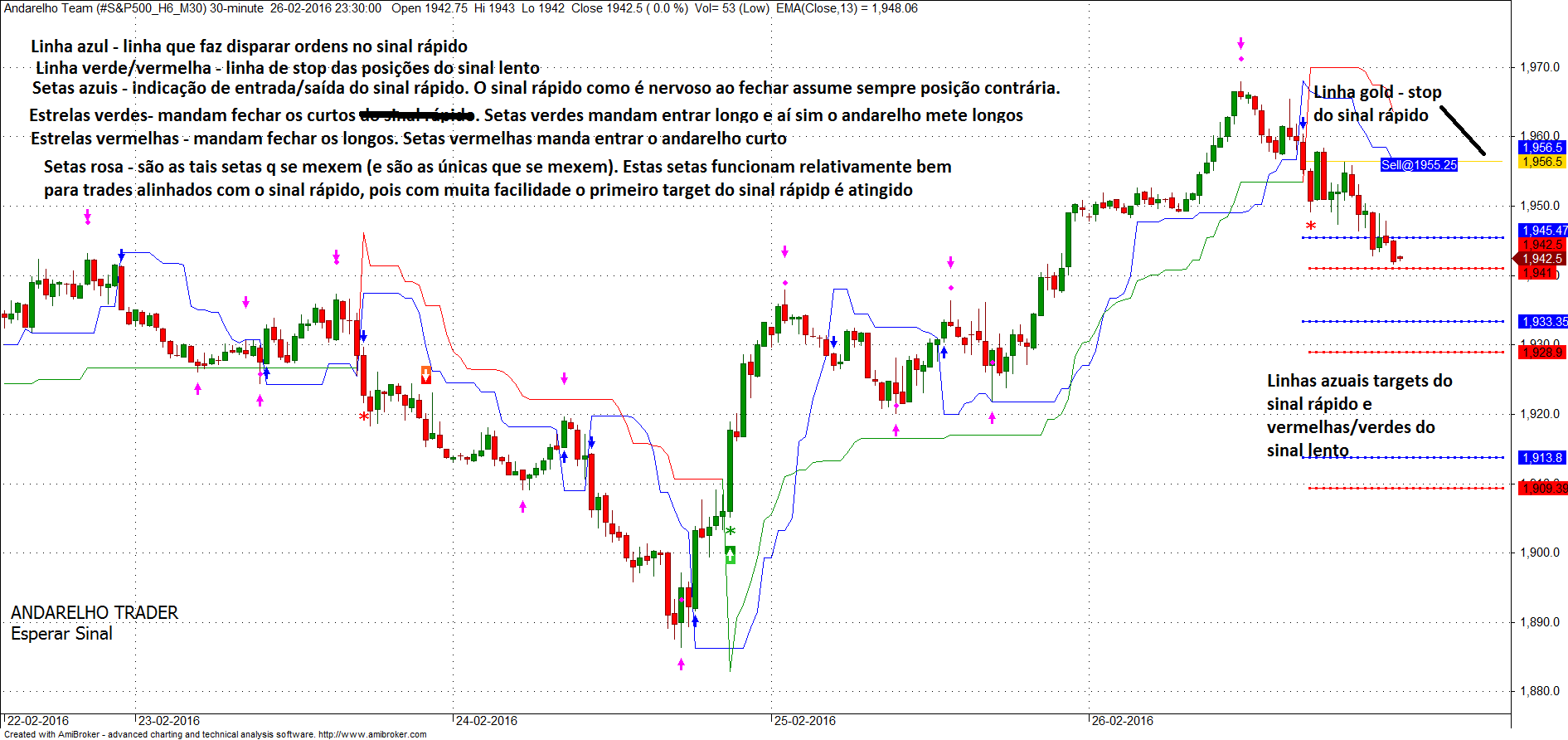 As setas rosa podia tira-las? Hummmmmm. Pelo estudo que fiz sempre que aparece esta sequência: seta rosa, seta azul (sinal de entrada rápido) e seta do andarelho para entrar curto ou longo, os trades são duma afinação muito boa.