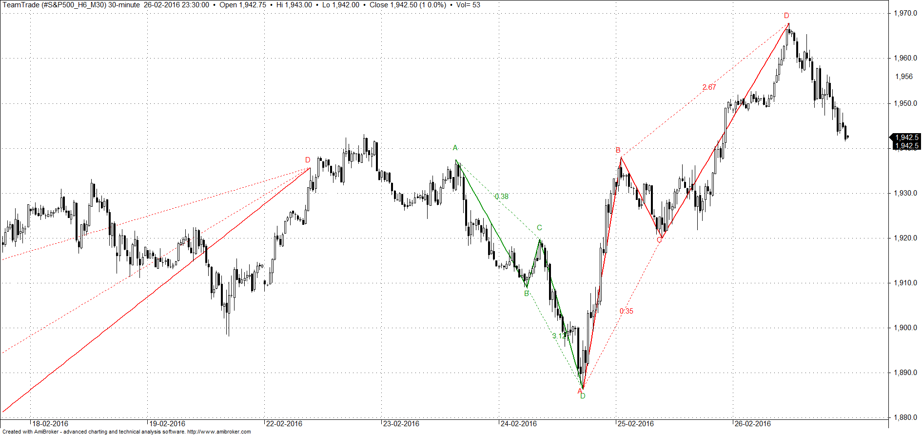 Se estou a fazer trading com base numa figura ela tem de estar lá desenhada. se é com base num harmónico ele tem de lá estar desenhado, se é com base num suporte ou resistência eles têm de estar identificados, se é com base nas elliot elas têm de lá estar, se é bom base em indicadores eles têm de lá estar. Ou seja, os argumentos que nos levam a ter uma posição no mercado, na minha opinião devem estar sempre visíveis no gráfico. Um gráfico que não tenhas as razões que sustentam o porque de estarmos curtos ou longos no mercado é como entrarmos num carro sem volante e começarmos a acelerar, enquanto houver rectas não há problemas, mas na primeira curva o estouro é certinho
