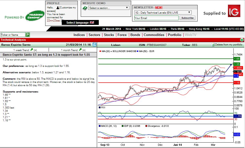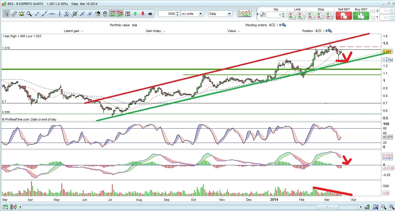 Hoje, parece-me que havia melhores escolhas no psi20, cotadas com mais força (estive na duvida ate ao ultimo momento entre entrar no BES, BPI ou Mota Engil), enquanto o BES ainda está aqui no meio da margarina a marinar.