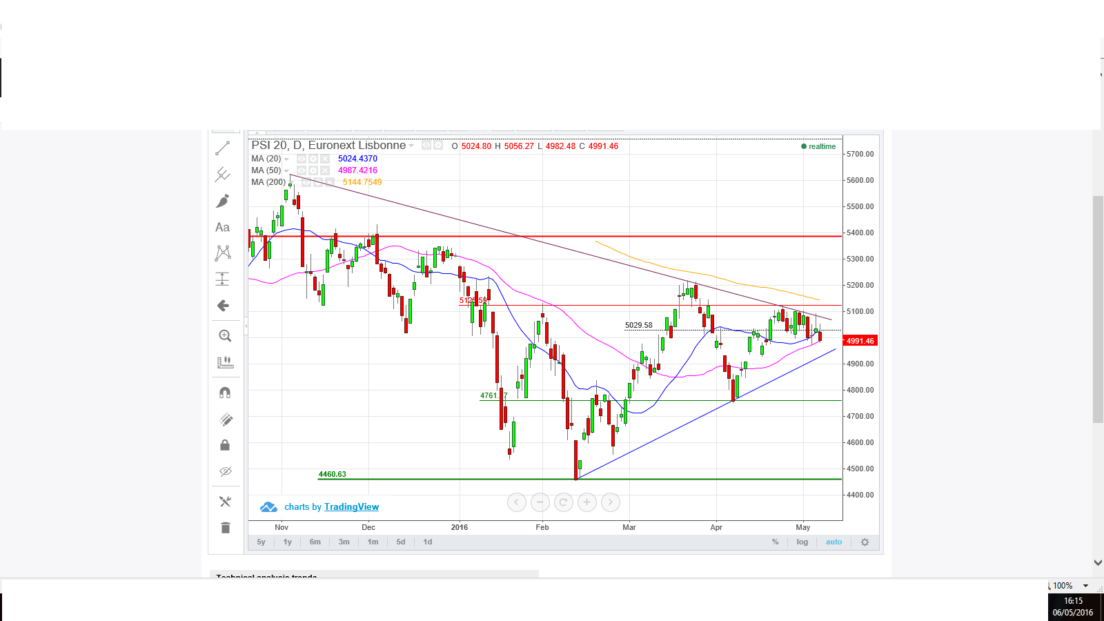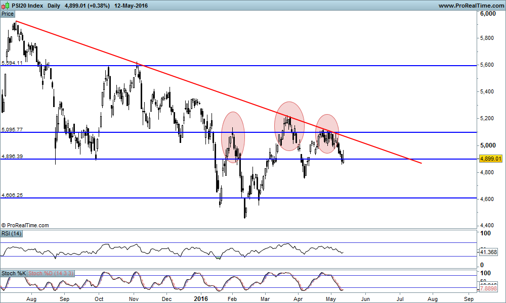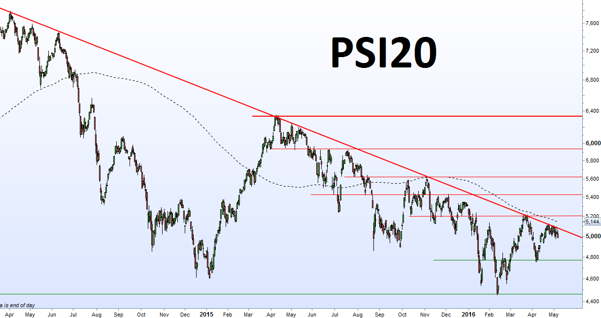 PSI não conseguiu superar a MA50 nos 4987, mesmo com envolvente de indices internacionais muito favoraveis.